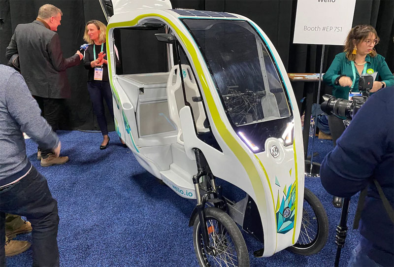 Французький стартап Wello показав триколісний транспортний засіб, який працює на сонячних панелях. Це щось середнє між велосипедом та мотоциклом, він поміщається на велодоріжках і для нього не потрібні права, так як педалі у нього теж є. Максимальна швидкість – 40 км/год, а його ціна – близько 7000 євро.