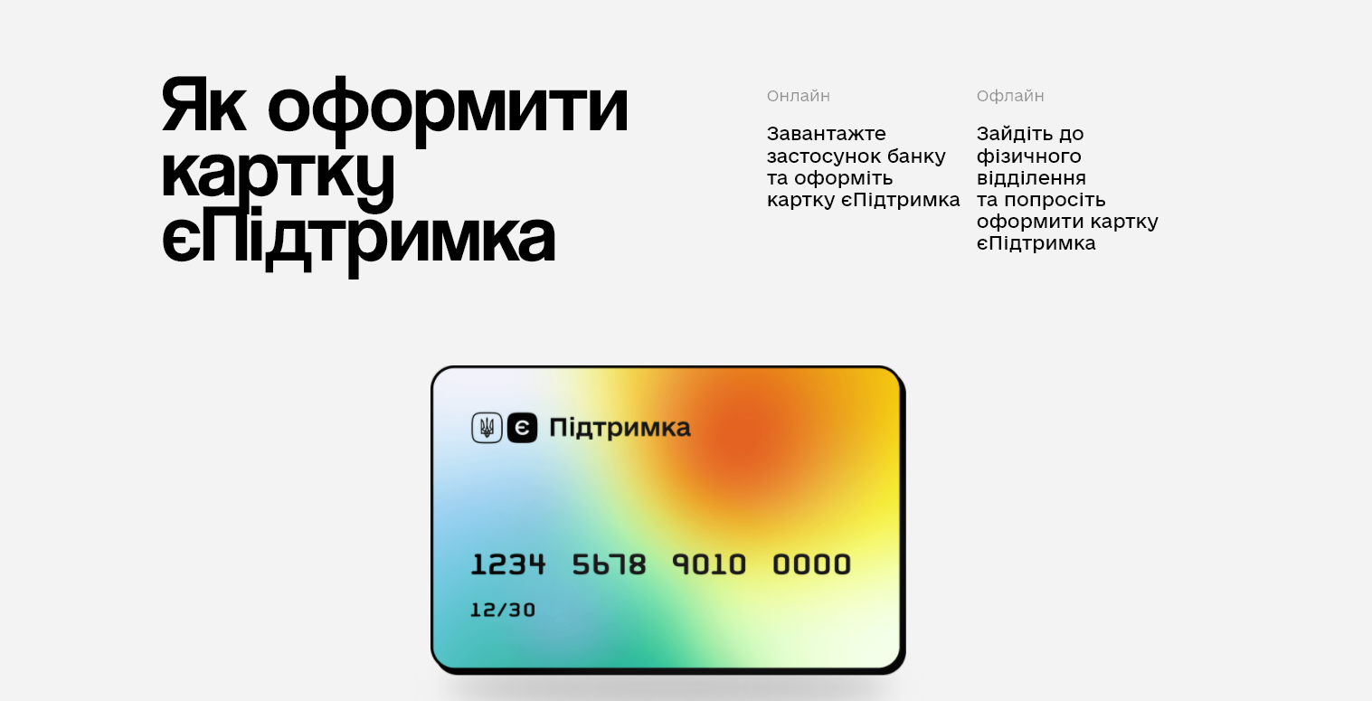 - Потрібно оформити спеціальну картку «єПідтримка» в одному з банків партнерів — наразі їх впускають чотири банки-партнери: monobank, «А-банк», «Альфа-Банк» та «Укргазбанк».