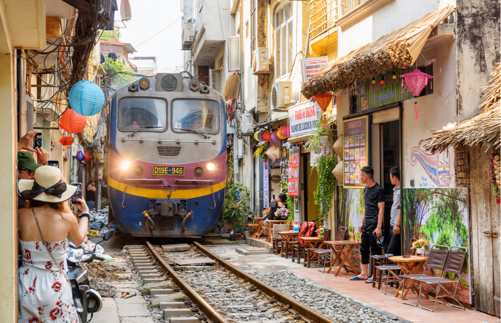 Залізнична колія, що пролягає через житлові квартали. В’єтнам