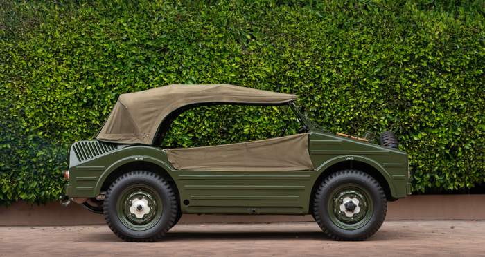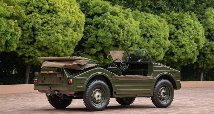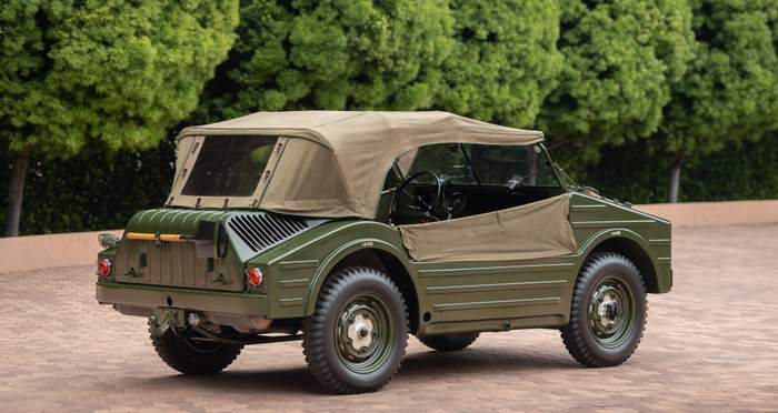 Конкретний екземпляр, який з’явився у продажу, продали дистриб’ютору Porsche-Volkswagen у квітні 1956 року, а перед появою на аукціоні він пройшов якісну реставрацію. Автомобіль пофарбований у статутний для німецької армії 50-х років темно-зелений колір кузова, має оббиті зеленим матеріалом сидіння, брезентовий знімний верх і м’які двері з того ж матеріалу.