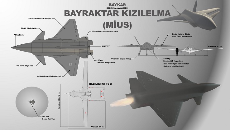 Байрактар зазначив, що Bayraktar Kizilelma буде найшвидшим безпілотником з усіх коли-небудь вироблених компанією Baykar Tech. Маючи злітну вагу в шість тонн, дрон зможе брати на борт до 1500 кг корисного навантаження. Швидкість польоту БЛПА з українським двигуном АІ-25 складатиме 800 км/год.