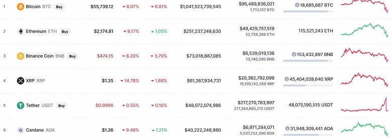 Разом з Bitcoin обвалилися й інші криптовалюти. Так, в піку зниження ціни на Ethereum склало 20%, на Binance Coin – 17%, Ripple – 26%, Litecoin – 28%, Tron – 25%. Зараз вони, як і Bitcoin, відіграли падіння – в більшій чи меншій мірі.