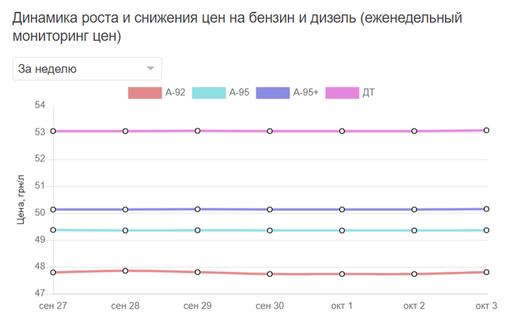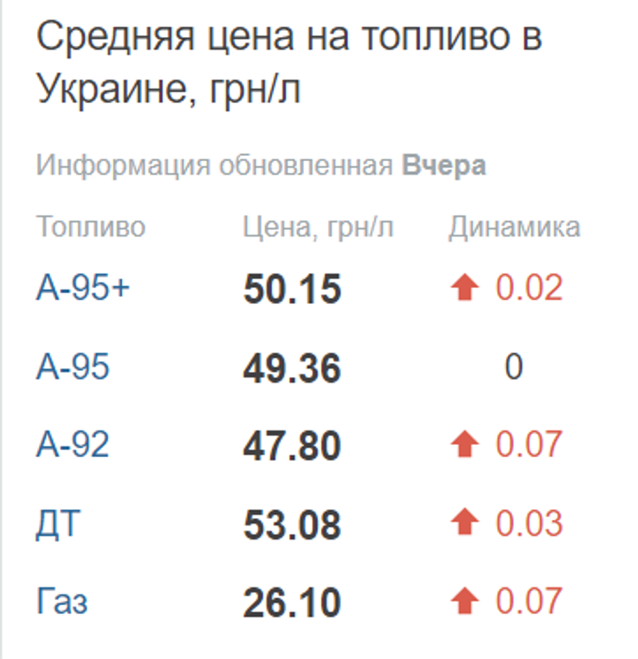 Вартість бензину категорії А-95 не змінилася – вона залишається на рівні 49,36 грн/л. А от бензин А-95+ здорожчав мінімально – з 50,13 до 50,15 грн/л.