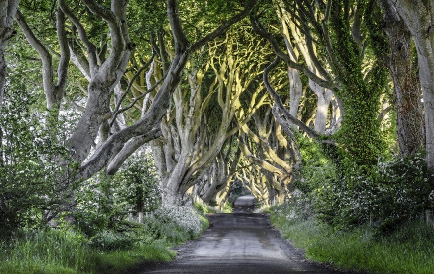 Шанувальники популярного серіалу «Гра престолів» напевно пам’ятають мальовничий Королівський тракт. Одна з найкрасивіших букових алей – Дарк Хеджес (Dark Hedges), де проходили зйомки серіалу, знаходиться в ірландському графстві Антрім.