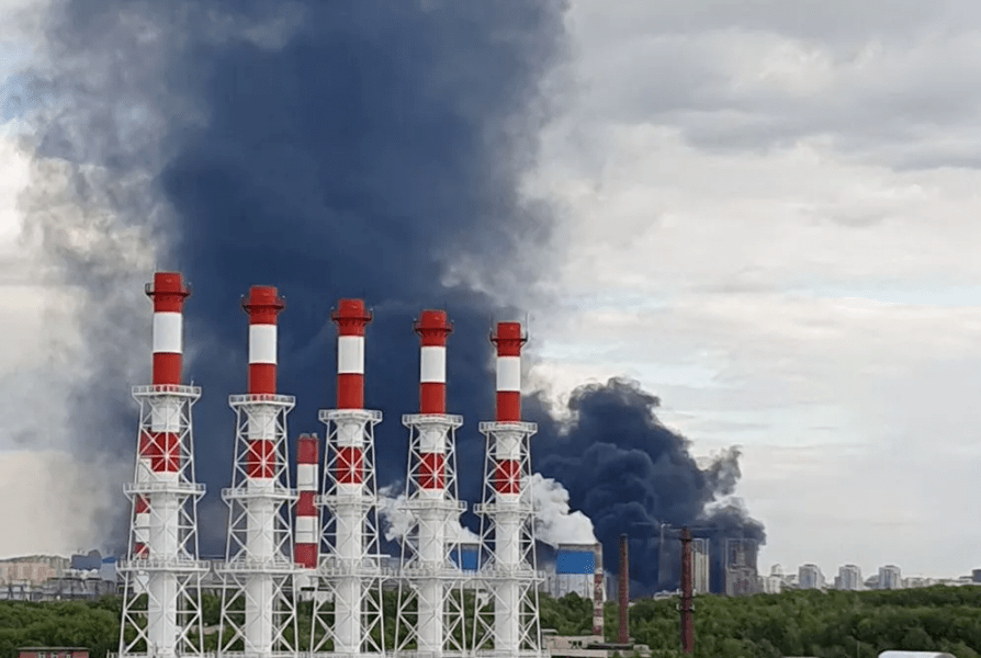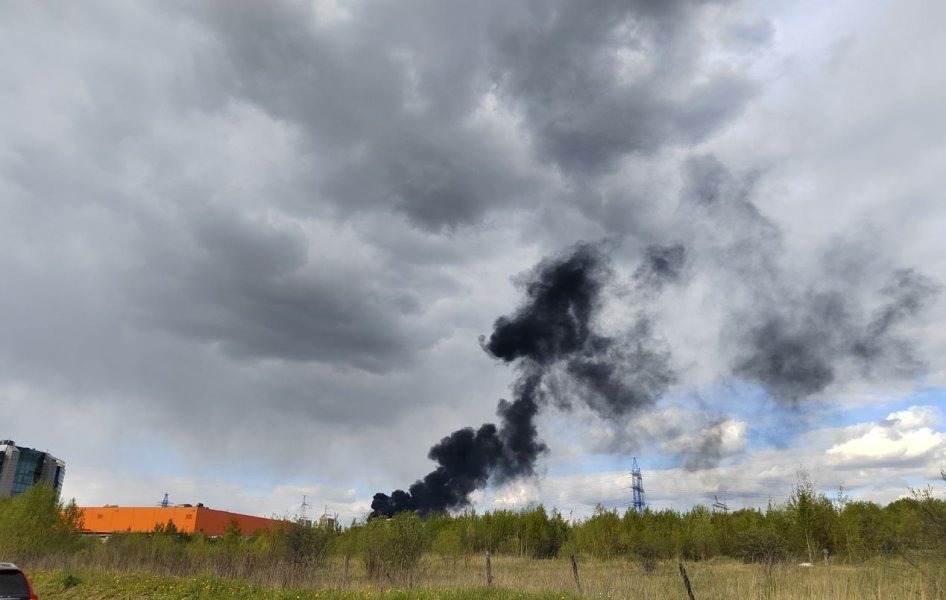Російське медіа Shot зазначає, що спалахнуло будівельне сміття — гідроізоляція та утеплювач. На даху було заблоковано кількох робітників.