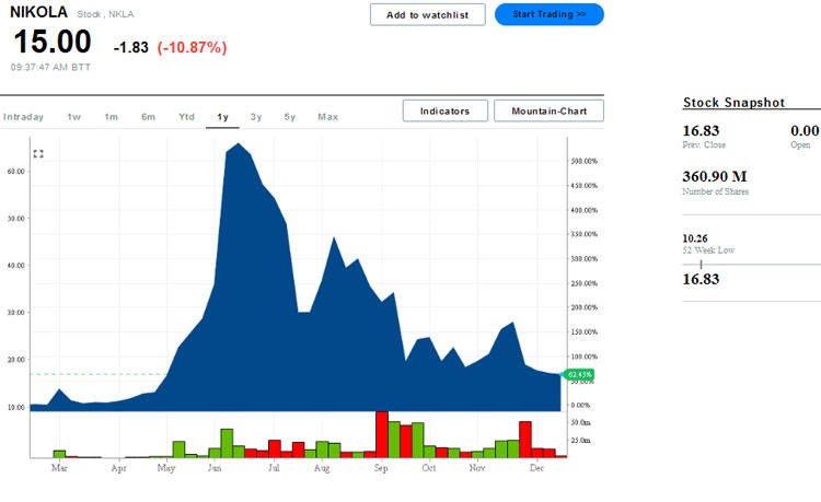 Динаміка акцій компанії Nikola. Джерело зображення: markets businessinsider