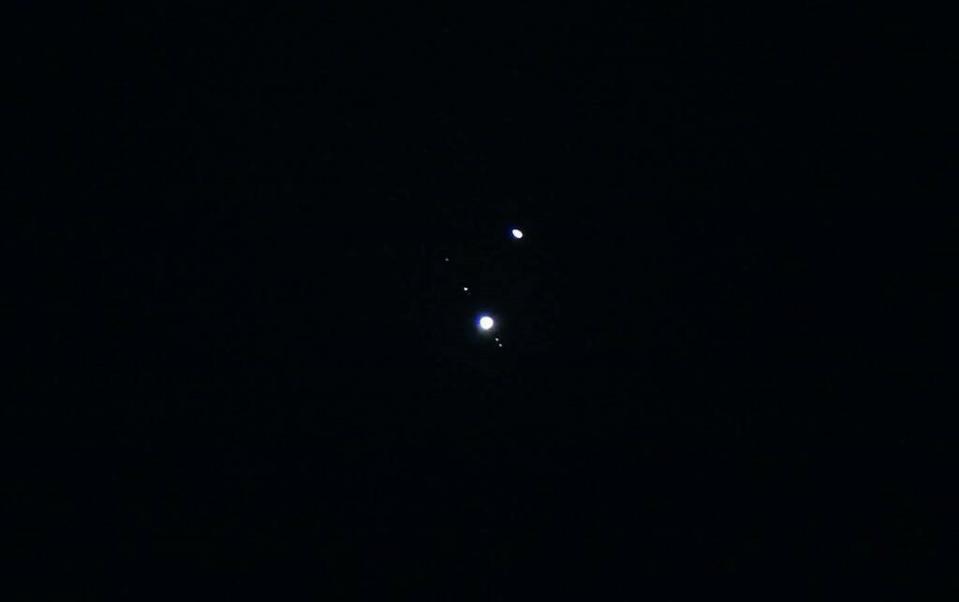 Цього разу Юпітер та Сатурн ну майже злилися, але, щоб не кривити душею, обіцяної Вифлеємської Зорі не утворилося))). Планети дійсно підійшли близько один до одного, короткочасно над горизонтом Сатурн зайшов за Юпітер, але все-таки, відстань між ними була помітна більшу частину часу.