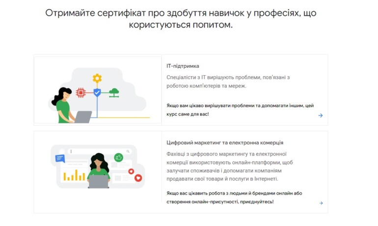 Більше інформації про Професійні сертифікати від Google можна знайти на сторінці Нові цифрові можливості з Google.