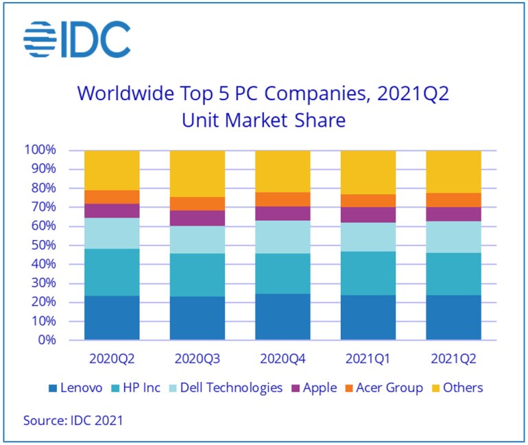 Як відзначають в IDC, високий попит призвів до появи нових постачальників. У той час як Топ-5 виробників комп’ютерної техніки продовжують збільшувати обсяги продажів, більш дрібні постачальники також сприяли зростанню, пропонуючи унікальні функції або нішеві рішення. Лідером ринку є компанія Lenovo, яка змогла реалізувати понад 20 млн комп’ютерів, захопивши 23,4% частки ринку. Показники інших компаній представлені в наступній таблиці.