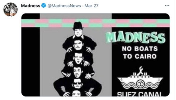 Раптово в гру включилася класичний ска-гурт Madness, у якого є сингл з їх дебютного альбому «Night Boat to Cairo» («Нічний паром в Каїр»). У себе у твіттері вони опублікували обкладинку цього синглу з новою назвою «No Boats to Cairo» – «Ніяких судів в Каїр».