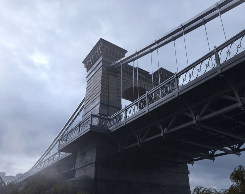 Дизайнер Макс Макаров створив проект-візуалізацію першого київського капітального мосту через Дніпро. Відновити всі деталі конструкції Миколаївського ланцюгового мосту з розмірами та матеріалами вдалося завдяки інформації, наданій Олексієм Янковським.