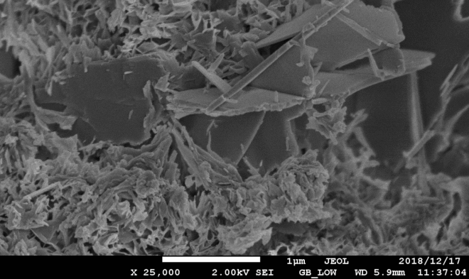 Вчені виявили глинистий тоберморит, що утворився всередині стінок внаслідок реакцій між мінералами в бетонній суміші у присутності води та помірно високої температури протягом тривалого періоду.