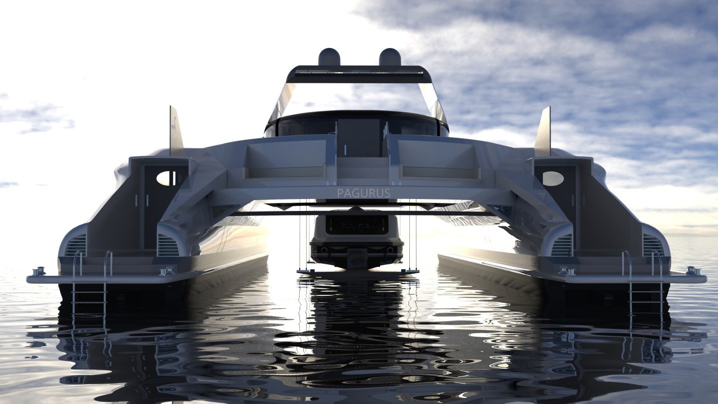 “Термін крабмаран виник внаслідок першого мозкового штурму фірми, об’єднавши слова краб і катамаран. Пізніше ми вирішили назвати її Pagurus, що на латині означає краб”, – повідомили розробники компанії.
