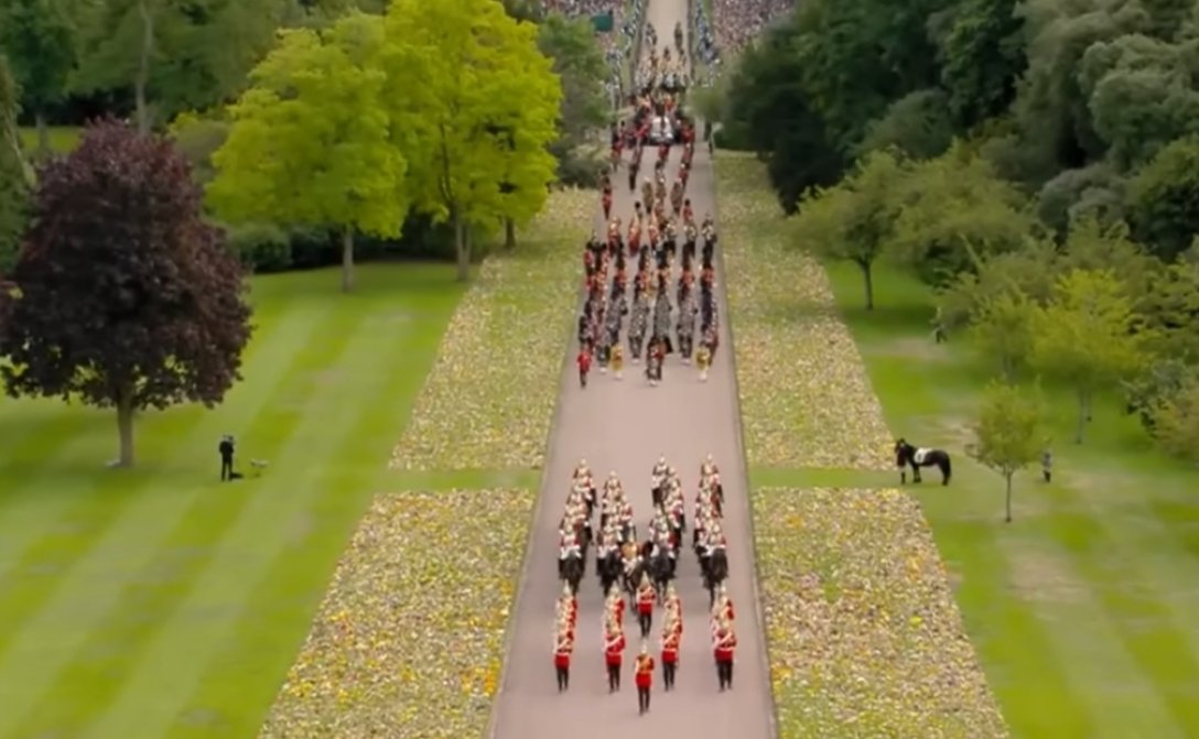 Попрощатися з королевою привели не лише коргі. Поні Її Величності Емму теж привели попрощатися з господинею. Тварина смиренно стояла, поки труну з тілом монарха везли повз. Кінь супроводжував Террі Пендрі, останнього менеджера королеви, який вклонився, коли катафалк проїхав повз нього.