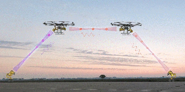 У поставленому експерименті, звіт про який опублікований в журналі Physics Review Letters, квантова мережа для передачі заплутаних фотонів була створена за допомогою двох вільно літаючих дронів. Відзначається, що подібне рішення дозволить в будь-якому місці майже миттєво та на досить великі відстані забезпечувати передачу квантово розподілених ключів і, отже, створювати невразливі оперативні (тимчасові) або постійні канали зв’язку.