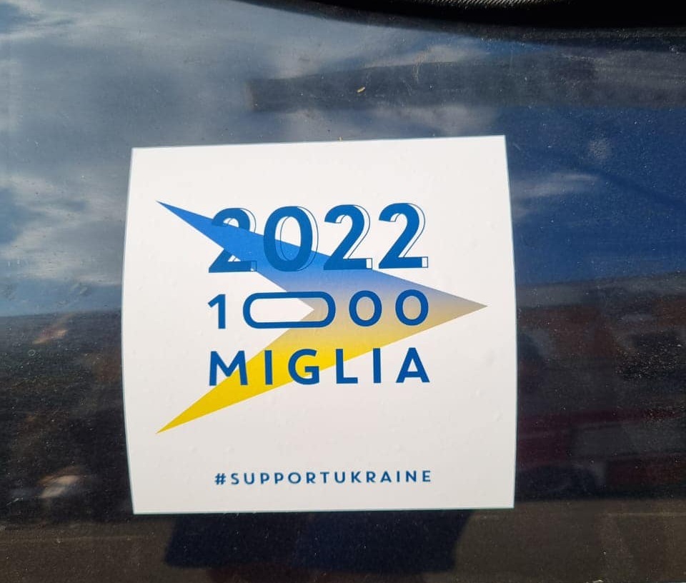 Як розповів активіст ретро-руху Вадим Навроцький, до організаторів Mille Miglia 2022 звернулися за підтримкою українські волонтери, які перебувають в Італії. Ті не змогли відмовити і тепер на усіх ретро-автомобілях з’явилися українські наліпки. Мало того, деякі машини змагаються із синьо-жовтими прапорами.