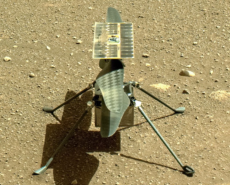 Марсіанський вертоліт NASA «Винахідливість» (Ingenuity) зробив свою першу кольорову фотографію незабаром після того, як його опустив на поверхню Червоної планети марсохід «Наполегливість» (Perseverance). Знімок має дозвіл лише 320 × 240 пікселів і не особливо інформативний.