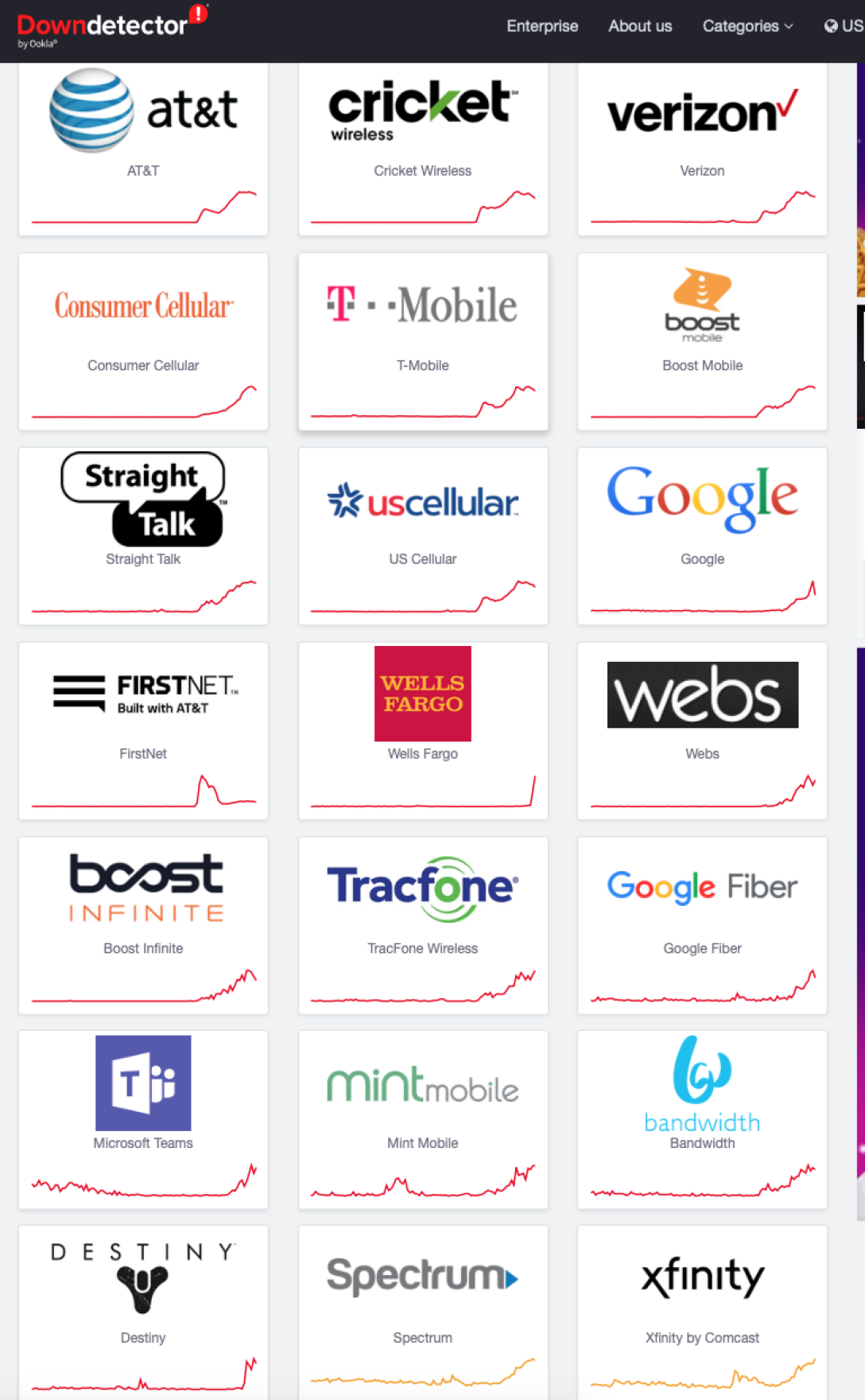 З’ясувалось, що клієнти AT&T через збій не можуть додзвонитись на лінію 911 та звернутись за допомогою в екстрені служби. Також про перебої зі зв’язком повідомляли й користувачі інших операторів, але компанії запевнили, що проблеми AT&T не впливають на їхню роботу.