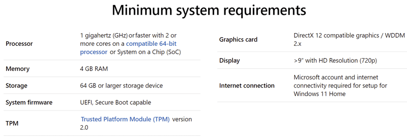 Для установки Windows 11 буде потрібно комп’ютер з 64-розрядним процесором, 4 Гбайт оперативної пам’яті й накопичувачем на 64 Гбайт, а також вбудованим апаратним модулем шифрування TPM 2.0. На сумісні пристрої Windows 11 буде доставлятися через «Центр оновлень Windows», подібно до того, як це відбувається з іншими оновленнями. Терміни запуску Windows 11 в ході презентації оголошені не були.