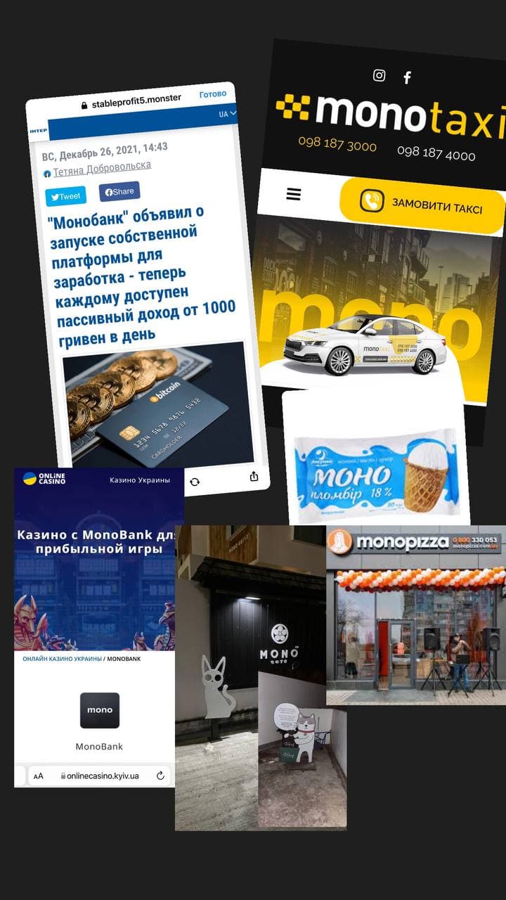 Так, останнім часом у соцмережах активно поширюються повідомлення про нові сервіси від monobank. Серед них — monopizza, monotaxi, казино та платформа для заробітку. Насправді monobank не має жодного відношення до вищезгаданих «продуктів» — все це підступи шахраїв, які переслідують власні інтереси.