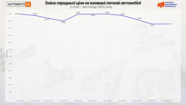 - Середня ціна на вживані легковики у продажі стабільно низька ($5300), причин для її різких коливань немає.