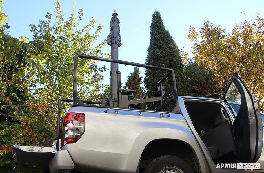 “Висота конструкції в бойовому положенні більше ніж десять метрів, що дозволяє бачити українським командирам на кілометри вперед. У салоні автомобіля встановлюється автономний пункт управління, ноутбук, камера, акумуляторні батареї, жорсткі диски. Цей комплекс спроможний контролювати місцевість, виявляти ворога та координувати підрозділи артилерії на знищення ворожих цілей. З метою збереження життя й здоров’я військовослужбовців працювати можна з-за укриття. Це дає можливість вести спостереження, збирати дані, узагальнювати й передавати їх для прийняття відповідних рішень, особливо на територіях, де наразі немає електроенергії, мобільного зв’язку та інтернету”, – йдеться в повідомленні.