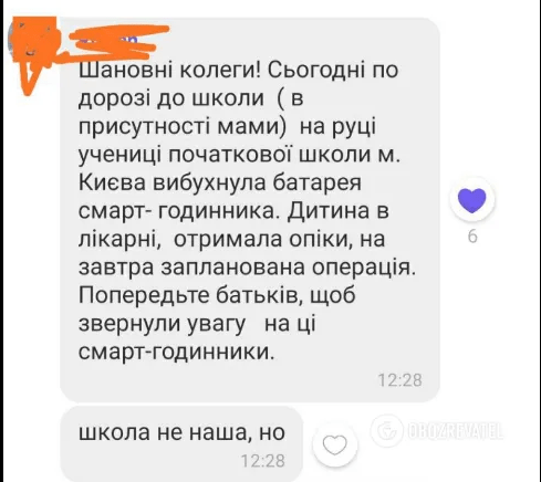 Вранці 4 лютого у дитини, яка йшла до школи вибухнув смарт-годинник.