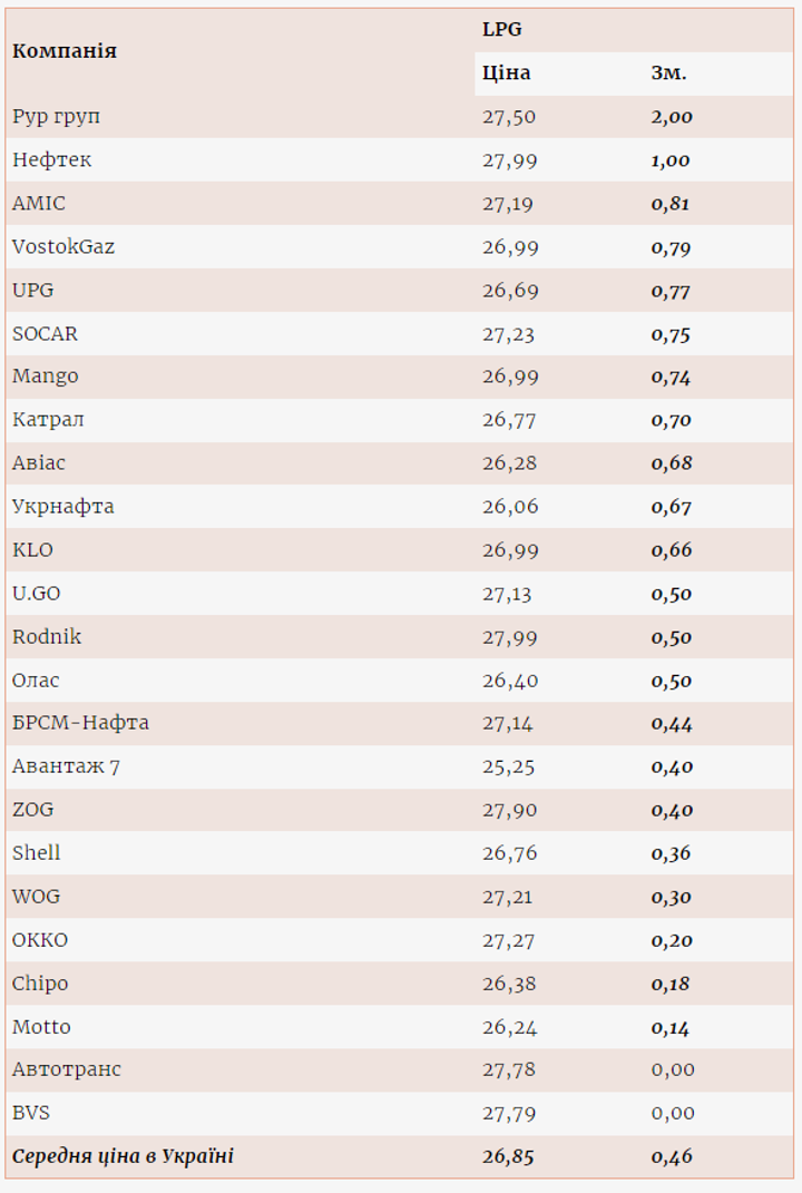 Середня роздрібна ціна на скраплений газ на АЗС за тиждень (7-14 жовтня) зросла на 46 копійок — до 26,85 гривень за літр. Про це свідчать дані щоденного моніторингу роздрібного ринку Консалтингової групи «А-95».