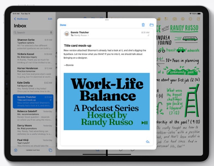 Нотатки. Сполучення клавіш, свайпом або за допомогою стилуса можна викликати замітки поверх будь-якої програми. Додалася можливість додавати в замітки теги, за якими пізніше можна шукати матеріали в новому менеджері тегів. Короткі замітки, створені на iPad, будуть доступні й на iPhone, і комп’ютерах Apple.