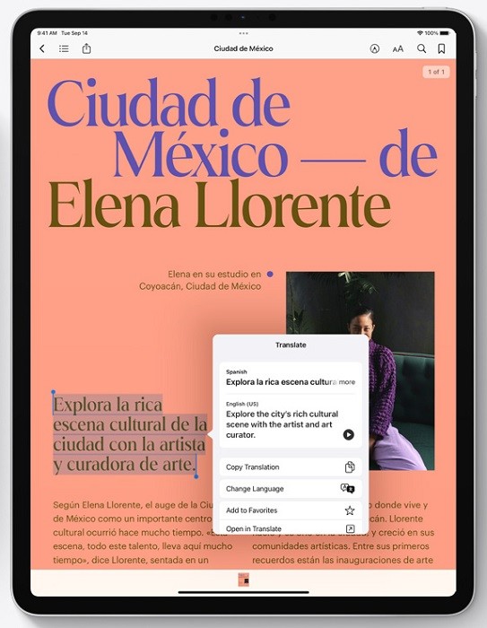 Переклад. Додаток Apple Translate тепер доступний і в iPadOS. Програма здатна перекладати текст, в тому числі у багатьох сторонніх додатках, і по суті є аналогом Google Translate. «Функція автоперекладів і спеціальний режим «Лицем до лиця» роблять спілкування ще зручнішим і допомагають стежити за бесідою», – повідомляє Apple.