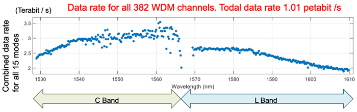 Група вчених з Інституту досліджень мережевих систем Національного інституту інформаційних та комунікаційних технологій (NICT) в Японії під керівництвом Георга Радемахера (NOKIA Bell Labs), Ніколя Фонтена та П’єра Сілларда (Prysimian Group), вперше у світі змогли передати дані по багатомодовому оптичному волокну зі швидкістю понад 1 Пбіт/с. Для передачі даних на відстань 23 км було використано 15-модове волокно з широкою смугою пропускання зі спеціальними мультиплексорами для спектрального ущільнення сигналу.