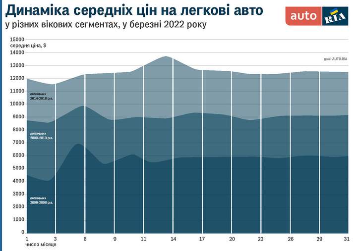 Обсяги імпорту до лютого становили близько 35 тисяч л/а в місяць. Якими вони можуть бути зараз, з урахуванням заборони на виїзд чоловіків за кордон, невідомо. Але зваживши на ті обставини, у яких ми перебуваємо сьогодні, навряд чи вони будуть більшими за це значення, а скоріш за все меншими. Тому якщо зіставити пропорції між парком наявних авто, на які власники намагатимуться утримувати “старі” ціни, та “свіжопригнаними”, які будуть дешевшими, різкої “просадки” середніх цін на ринку у лічені дні очікувати навряд чи варто.