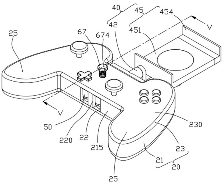 Опис контролера виявлено в патентній документації. Як можна бачити на зображенні нижче, пристрій обладнаний традиційними джойстиками, хрестовиною та набором кнопок.