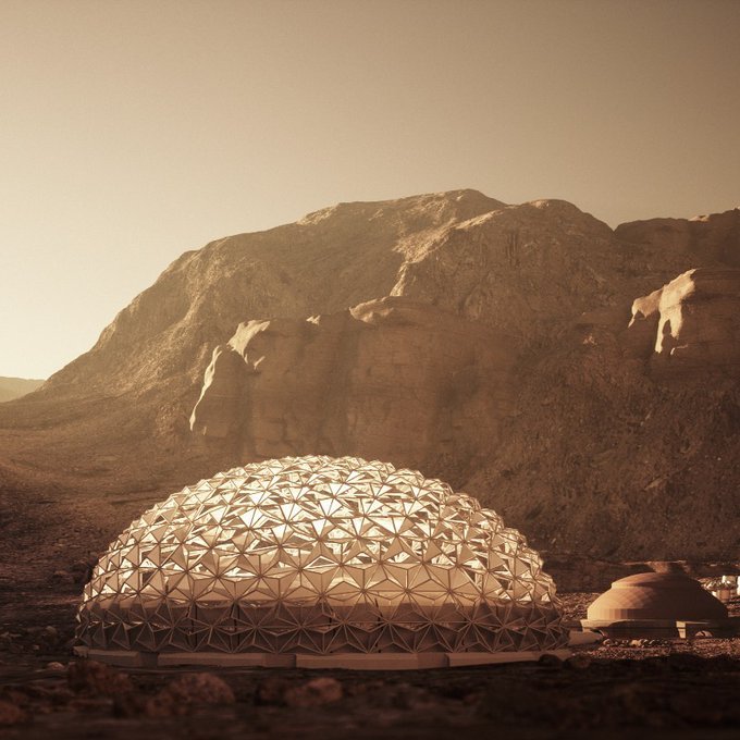 “По суті, з водою і CO2 ми можемо генерувати вуглець, а з вуглецем – сталь”, – сказав Альфредо Муньос. Керівник архітектурної студії натякає на використання виключно матеріалів, які могли бути отримані на Марсі.