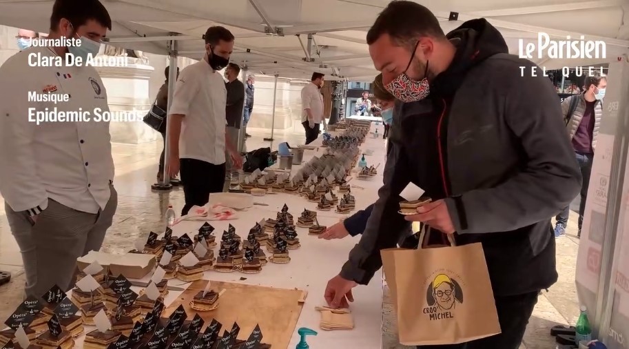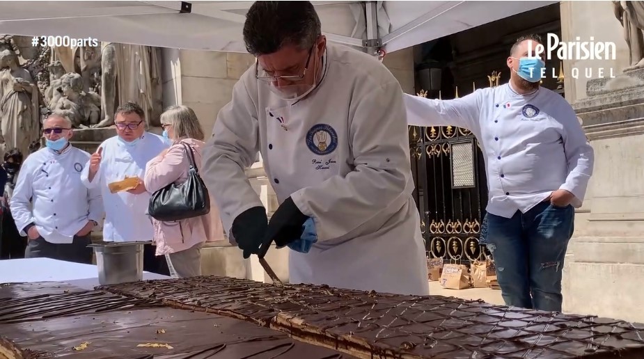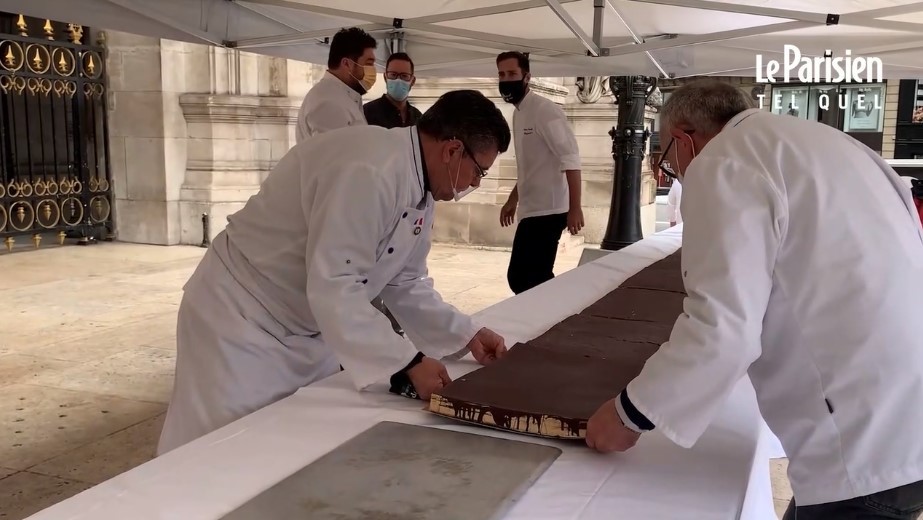 Торт розмістили на столах на сходах біля палацу Гарньє, де і знаходиться Паризька опера. Через коронавірусні обмеження на дегустацію потрібно було записуватися заздалегідь. Всього спробувати десерт прийшли близько трьох тисяч осіб. Залишки торта були передані студентським асоціаціям.
