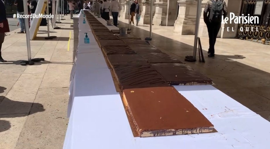 За словами організаторів, для приготування гігантського десерту знадобилося близько ста кілограмів первинного матеріалу, в тому числі тисяча яєць і 36 кг шоколаду. На виготовлення торта довжиною 30,73 метра у кондитерів пішло три дні.