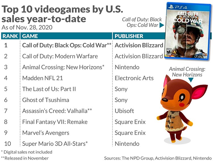 Цікаво, що цінні папери трьох найбільших американських видавців відеоігор перевершили середній показник серед компаній в списку S&P 500 (14%): акції Activision Blizzard виросли на 49%, Electronic Arts — на 30%, а Take-Two Interactive — на 64%.