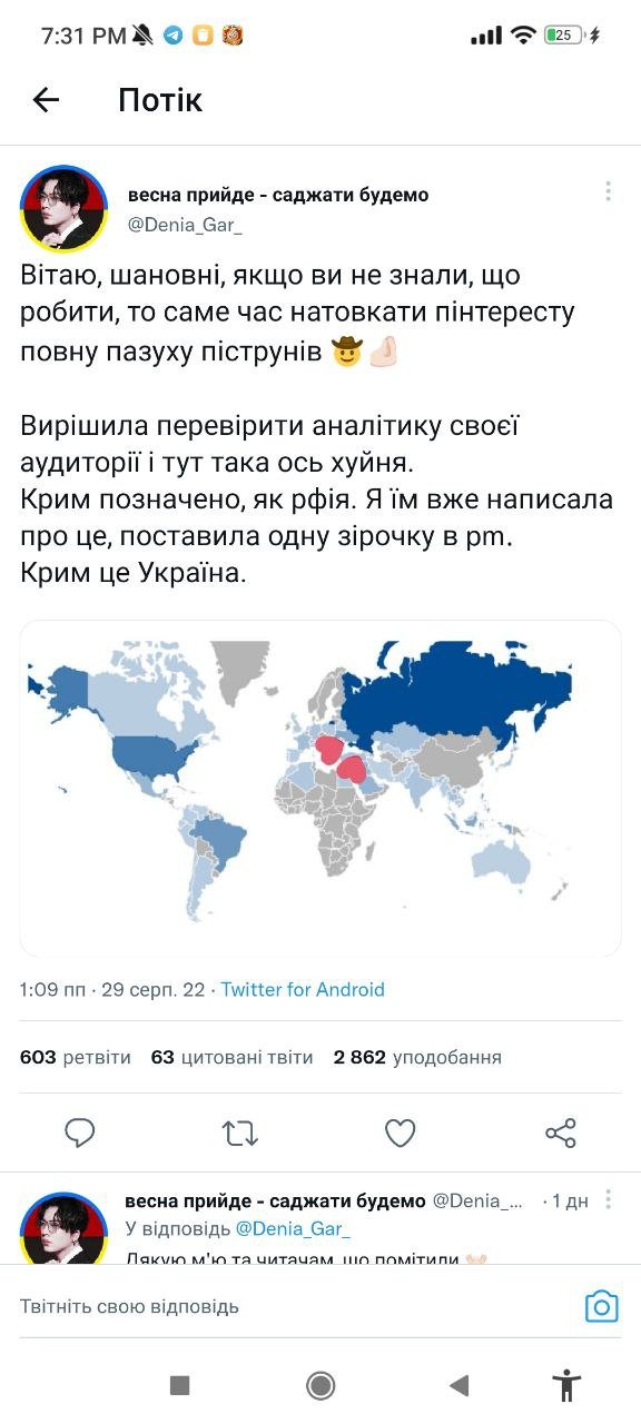 На сьомому місяці повномасштабної війни така, м’яко кажучи, незрозуміла позиція Pinterest щодо Криму викликала праведний гнів українського народу. За цим посиланням можна знайти відповідний тред у Twitter, присвячений обговоренню цієї болючої теми.