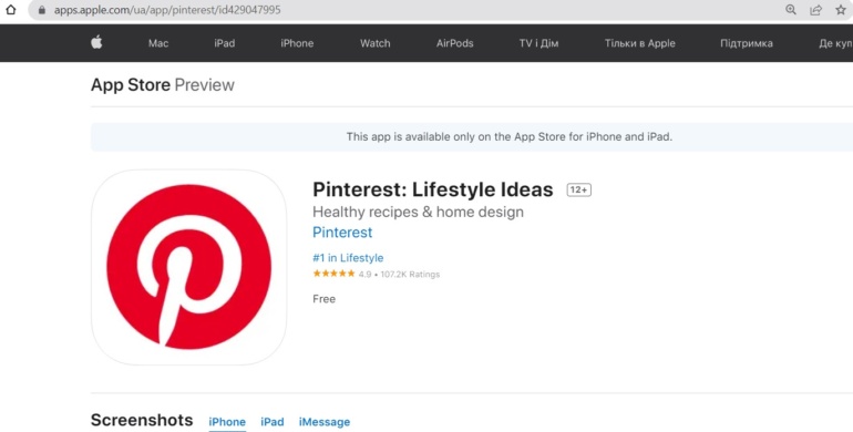 А втім, в App Store рейтинг Pinterest все ще становить 4,9 на основі 107 тис. оцінок.