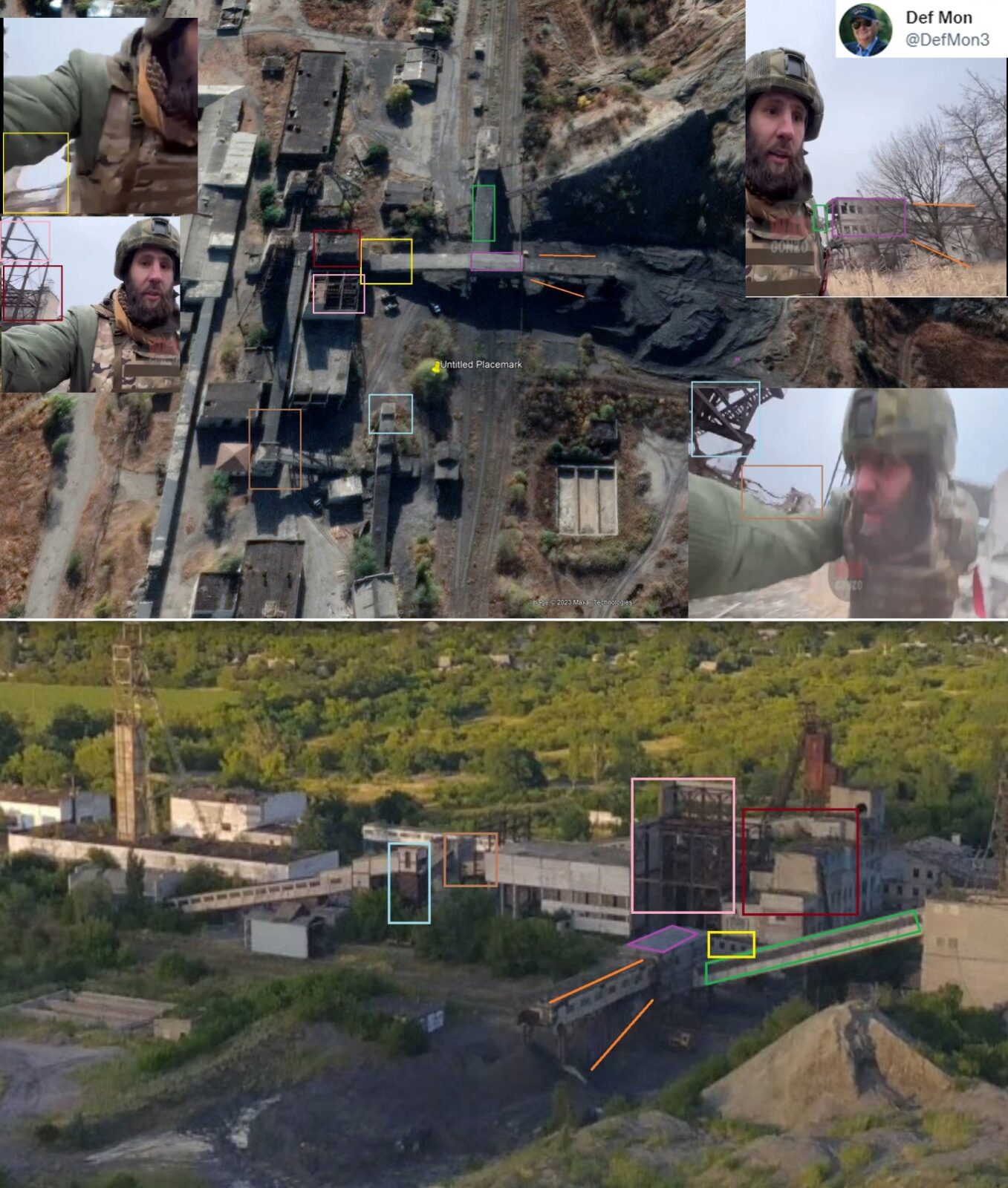 На це звернув увагу відомий OSINT дослідник Def Mon, команда якого провела геолокацію міста подій та доволі точно визначила її, як шахту Привільнянська недалеко від Лисичанська.