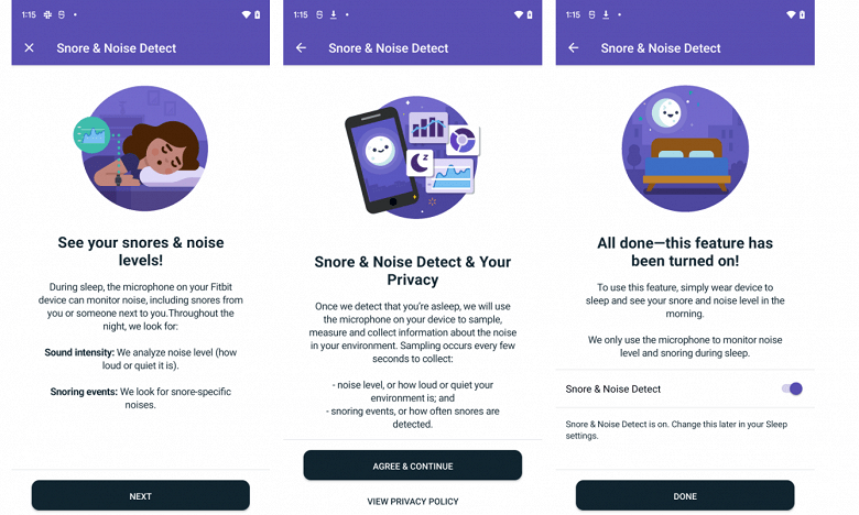 Функція Snore & Noise Detect буде використовувати мікрофон для відстеження шумів в нічний час. У тому числі ПО визначатиме і хропіння. Правда, якщо хропіти буде хтось поруч з носієм годин, пристрій не зможе визначити, хто саме є джерелом шуму.
