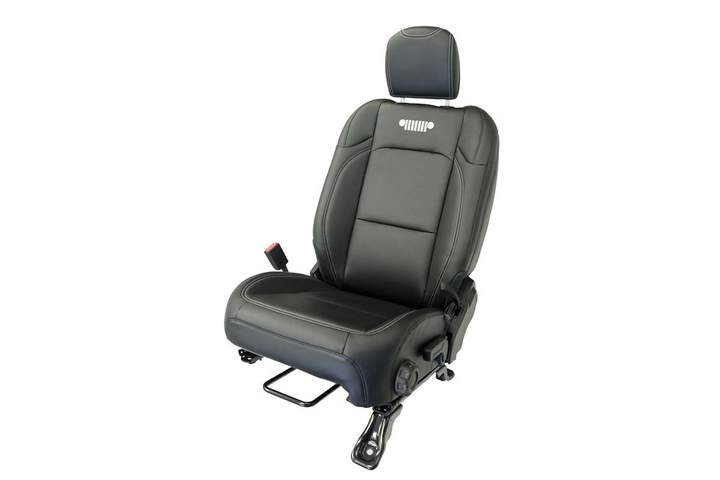 Коли верхня частина Wrangler відкрита, а двері зняті, в салон проникає багато бруду та пилу. Не кажучи вже про опади. Ось тут і стають у пригоді опційні вінілові сидіння, які мають додатковий захист від води, цвілі, розривів тощо. Водостійкі сидіння Jeep доступні в будь-якому кольорі, якщо він чорний. Вони також мають світло-вольфрамове прострочення та чарівну решітку Wrangler, вишиту на спинках сидінь.