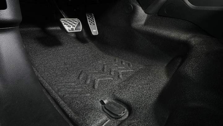 Заміна стандартного підлогового покриття Wrangler на опційне, стійке до води, спрощує очищення поверхні та включає вбудовані стоки для підлоги. Поряд з покращеною здатністю промиватися шлангом, чорна міцна підлога має кілька шарів, які, як кажуть, також забезпечують кращу звукоізоляцію та теплозахист.