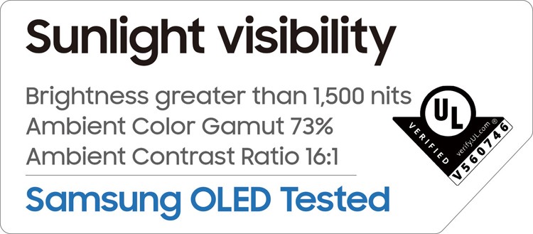 Ключова особливість екрану — відмінна картинка та чудовий перегляд текстів та зображень на відкритих просторах при яскравому сонячному світлі. Південнокорейський гігант відзначає, що зазвичай при використанні смартфонів поза приміщеннями яскравим днем дисплей виглядає темним, а текст на ньому стає нерозбірливим. Нова панель Samsung позбавлена даного недоліку.