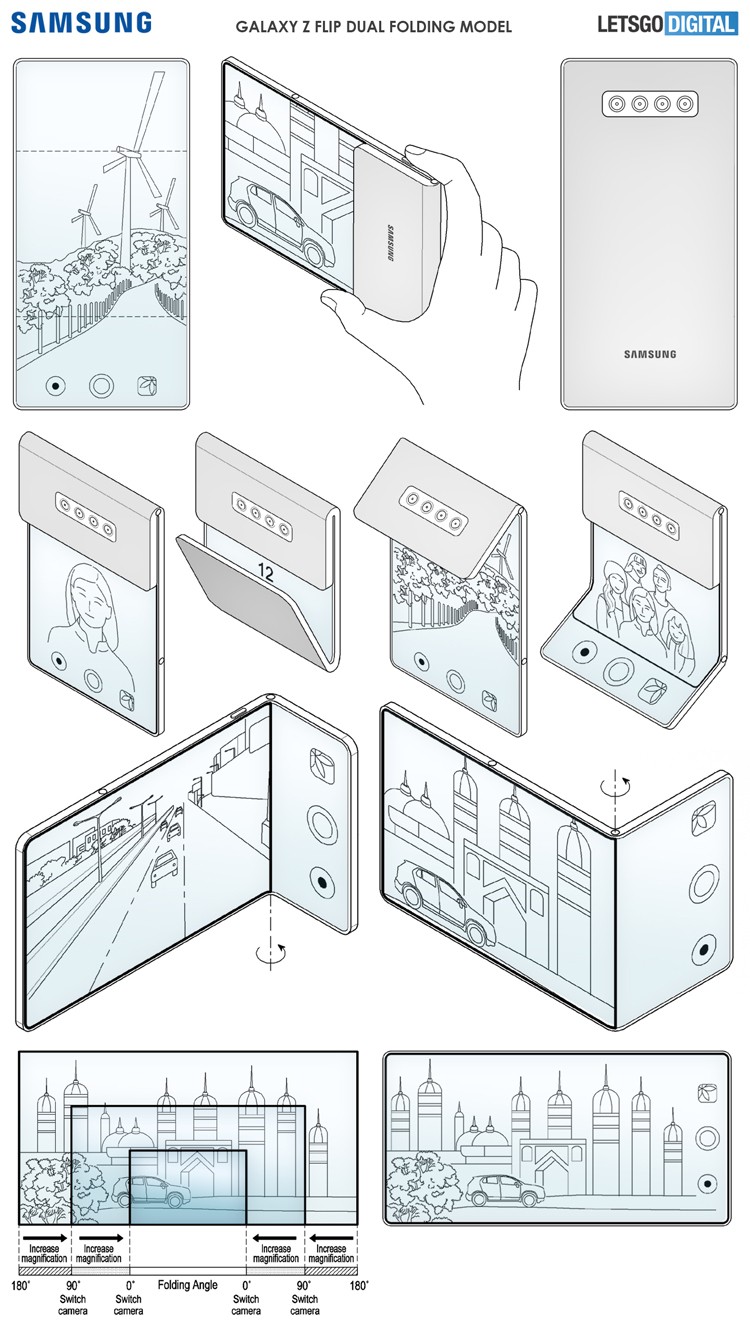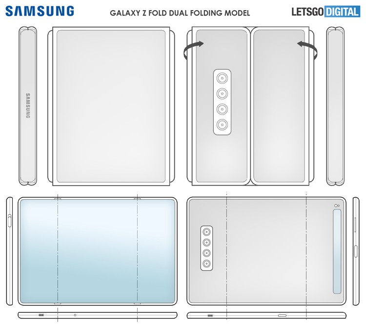 Ще один варіант — смартфон з трисекційний гнучким дисплеєм Z-подібної конструкції. У такій версії в складеному стані одна з частин екрану виявиться зовні, що дозволить взаємодіяти з гаджетом, не відкриваючи його.