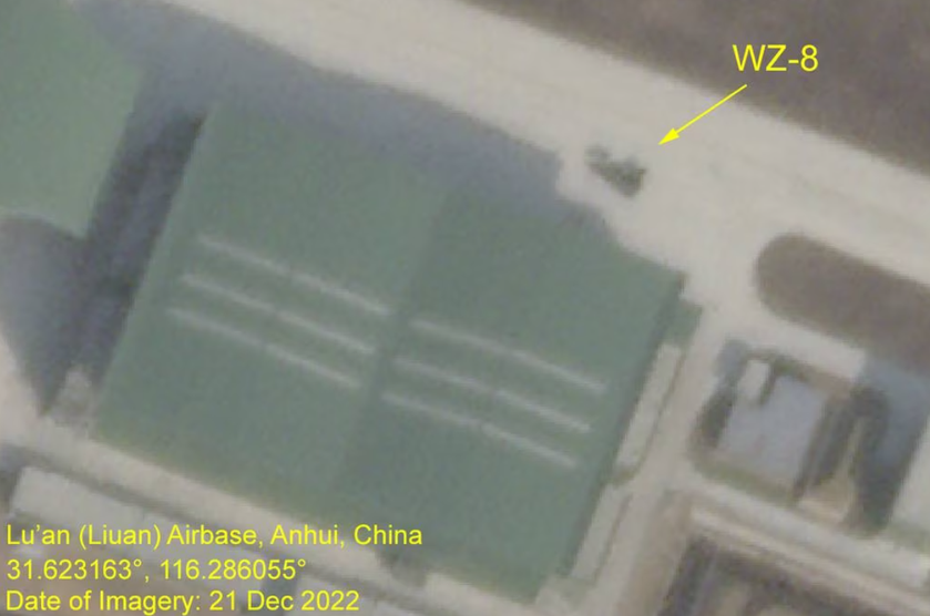 Журналісти Defense News отримали зображення секретного китайського надзвукового дрона WZ-8. Безпілотний літальний апарат припаркувався біля одного з нових ангарів на авіабазі “Луань” (Lu’an) у провінції Аньхой.