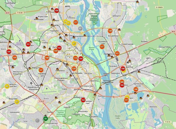 Наприклад, у центрі Києва датчики зафіксували 34 ppm, у Чернігові – 31 ppm.