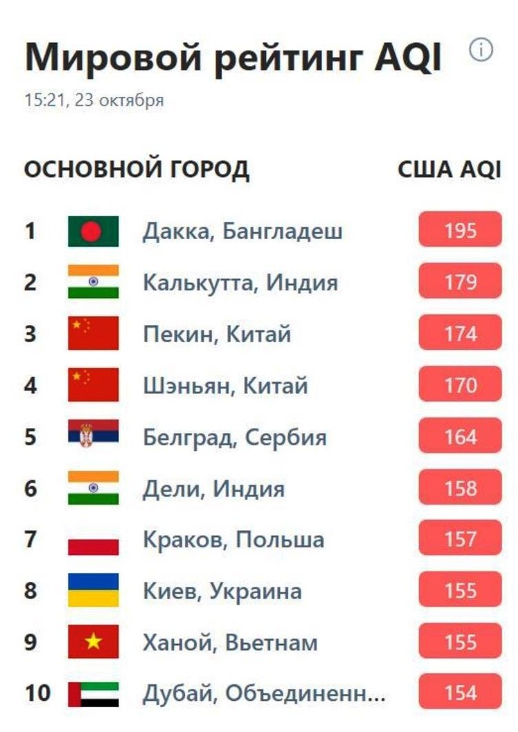 Втім, 23 жовтня наша країна вже не була лідером на світовій мапі за рівнем концентрації СО.