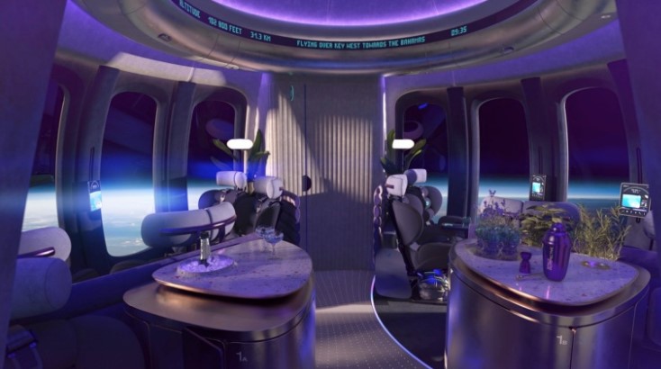 У кабіні передбачені зручні крісла з відкидною спинкою. Їх можна організувати як для проведення групових заходів, так і для романтичної вечері пар. Ще доступні харчування та обслуговування в барі, підключення до Wi-Fi, інтерактивні екрани для показу інформації, декоративне освітлення і телескоп для спостереження за Землею. І додатково реалізована «розкішна» туалетна кімната із вікном. Space Perspective обіцяє для Spaceship Neptune огляд з охопленням 360 градусів.