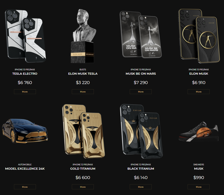 Tesla Electro є лише частиною колекції Caviar, яка вшановує Ілона Маска. Колекція містить п’ять інших індивідуальних iPhone, “марсіанські” кросівки Nike Air Force 1s, прикраси з 24-каратного золота для Tesla Model S, а також бюст Маска, також виготовлений з розплавлених деталей Tesla Model 3.